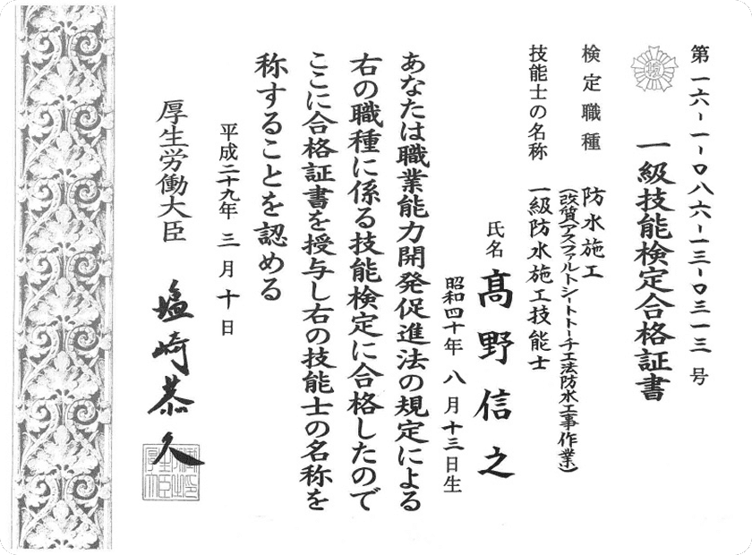 建築施工管理技士による現場管理、防水施工技能士を中心とする工事部隊による施工を行います。