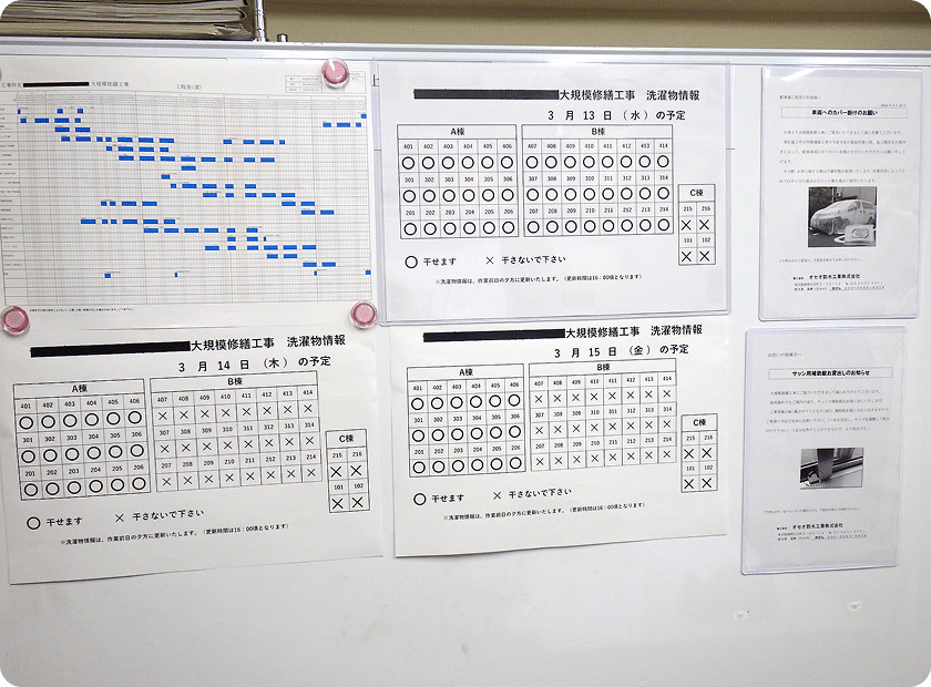 - ベランダの洗濯物情報をわかりやすく掲示、及び配布いたします。